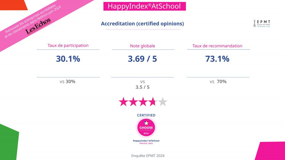 - Taux d’apprenants satisfaits des échanges avec l’EPMT (formateurs, tuteurs, développeurs, …) : 100%